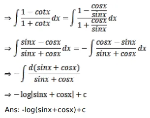 $\int\left(\frac{1-\cot x}{1+\cot x}\right) d x$
