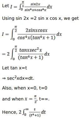 $\int_{0}^{\pi / 2} \frac{\sin 2 x}{\left(\sin ^{4} x+\cos ^{4} x\right)} d x$