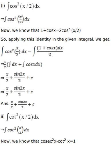 (ii) $\int \cot ^{2}(\mathrm{x} / 2) \mathrm{dx}$