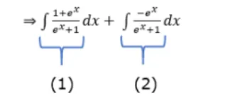 $\Rightarrow \int \frac{1+e^{x}}{e^{x}+1} d x+\int \frac{-e^{x}}{e^{x}+1} d x=x-\ln \left|1+e^{x}\right|+C$