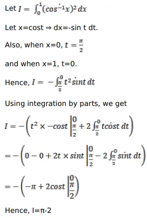 $\int_{0}^{1}\left(\cos ^{-1} x\right)^{2} d x$