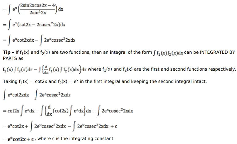 $\int e^{x}\left(\frac{\sin 4 x-4}{1-\cos 4 x}\right) d x$