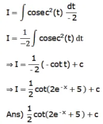 $\int e^{-x} \operatorname{cosec}^{2}\left(2 e^{-x}+5\right) d x$