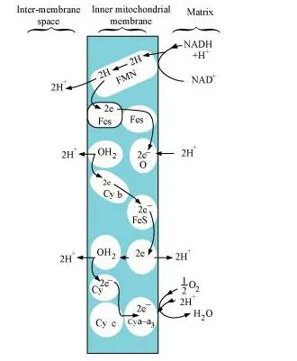 ETS or electron transport system is located in the inner mitochondrial membrane. It helps in releasing and utilizing the energy stored in NADH+H+ and FADH2. NADH + H+, which is formed during glycolysis and citric acid cycle, gets oxidized by NADH dehydrogenase (complex I). The electrons so generated get transferred to ubiquinone through FMN. In a similar manner, FADH2 (complex II) generated during citric acid cycle gets transferred to ubiquinone. The electrons from ubiquinone are received by cytochrome bc1 (complex III) and further get transferred to cytochrome c. The cytochrome c acts as a mobile carrier between complex III and cytochrome c oxidase complex, containing cytochrome a and a3, along with copper centres (complex IV).