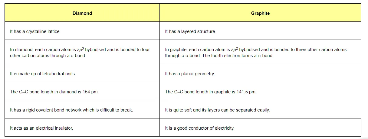 Explain the difference in properties of diamond and graphite on the basis of their structures.