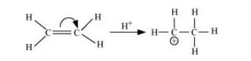 It involves the complete transfer of the shared pair of $\pi$ electrons to either of the two atoms linked by multiple bonds in the presence of an attacking agent. For example,