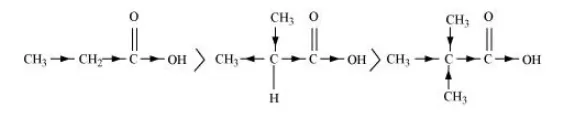 When an atom or group attracts electrons towards itself less strongly than hydrogen, it is said to possess + I effect. For example,