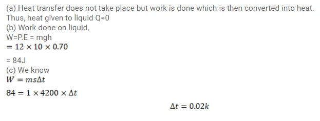 (c) Calculate the rise in the temperature of the liquid neglecting the heat capacity of the container and the paddle.