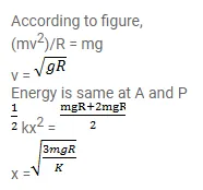 Figure (8-E15) shows a smooth track, a part of which is a circle of radius $\mathrm{R}$. A block of mass $m$ is pushed against a spring of spring constant $\mathrm{k}$ fixed at the left end and is then released. Find the initial compression of the spring so that the block presses the track with a force mg when it reaches the point $\mathrm{P}$, where the radius of the track is horizontal.