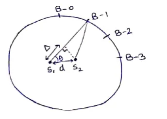 Figure shown two coherent sources $S_{1}$ and $S_{2}$ which emit sound of wavelength $\lambda$ in phase. The separation between the sources is $3 \lambda$. A circular wire of large radius is placed in such way that $S_{1}, S_{2}$ is at the centre of the wire. Find the angular positions $\theta$ on the wire for which constructive interference takes place.