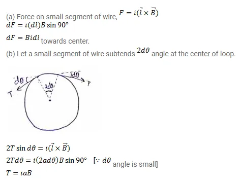 Figure shows a circular wire-loop of radius a, carrying a current i, placed in a perpendicular magnetic field B.