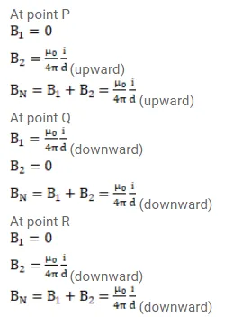 Figure shows a long wire bent at the middle to form a right angle. Show that the magnitudes of the magnetic field at the points $P, Q, R$ and $S$ are equal and find this magnitude.