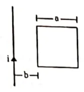 Figure shows a square frame of wire having a total resistance placed coplanarly with a long, straight wire. The wire carries a current i given by $i=i_{0} \sin \omega t$. Find