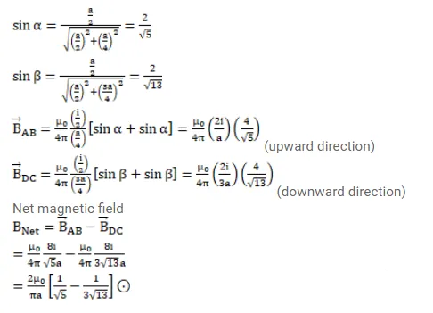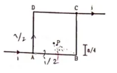Figure shows a square loop of edge a made of a uniform wire. A current $i$ enters the loop at the point $A$ and leaves it at the point C. Find the magnetic field at the point $P$ which is on the perpendicular bisector of $A B$ at a distance a/ 4 from it.