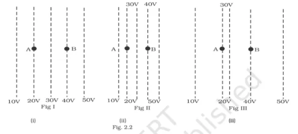 Figure shows some equipotential lines distributed in space. A charged object is moved from point A to point B.