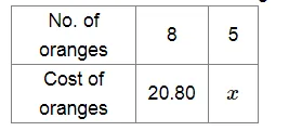 (iv) If 8 oranges cost Rs 20.80, the cost of 5 oranges is Rs .........