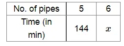 (ii) If 5 pipes can fill tank in 144 minutes, then 6 pipes can fill it in ......... minutes.
