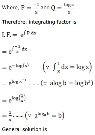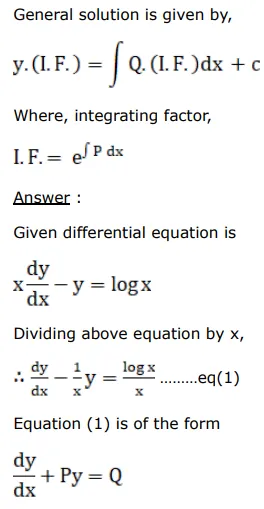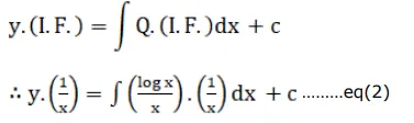 $\mathrm{x} \frac{\mathrm{dy}}{\mathrm{dx}}-\mathrm{y}=\log \mathrm{x}$, given that $y=0$ when $x=1$