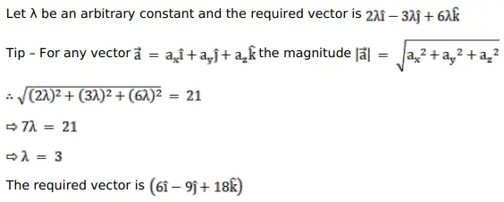 Find a vector of magnitude 21 units in the direction of the vector $(2 \hat{\mathrm{i}}-3 \hat{\mathrm{j}}+6 \hat{\mathrm{k}})$.