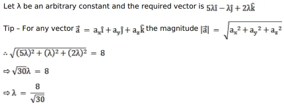 Find a vector of magnitude 8 units in the direction of the vector $(5 \hat{\mathrm{i}}-\hat{\mathrm{j}}+2 \hat{\mathrm{k}})$.