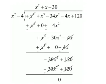 $x^{4}+x^{3}-34 x^{2}-4 x+120=\left(x^{2}-4\right)\left(x^{2}+x-30\right)-0$
