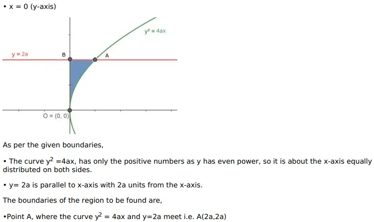 Find by integration the area bounded by the curve $y^{2}=4 a x$ and the lines $y=2 a$ and $x=0$.