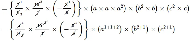 $=\left\{\frac{7}{9} \times \frac{15}{7} \times\left(-\frac{3}{5}\right)\right\} \times\left(a \times a \times a^{2}\right) \times\left(b^{2} \times b\right) \times\left(c^{2} \times c\right)$
