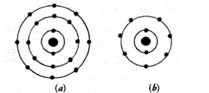 Find out the valency of the atoms represented by the Fig. (a) and (b).