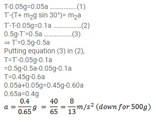 Find the acceleration of the $500 \mathrm{~g}$ block in figure