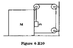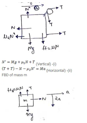 When a block $M$, moves with acceleration a towards right block $m$ moves downwards and rightwards with acceleration $2 a$ and a respectively.