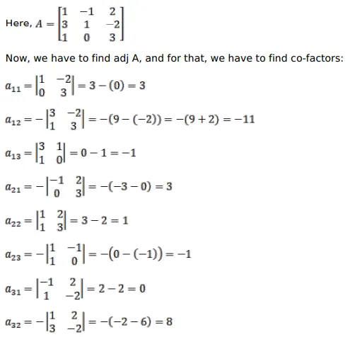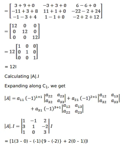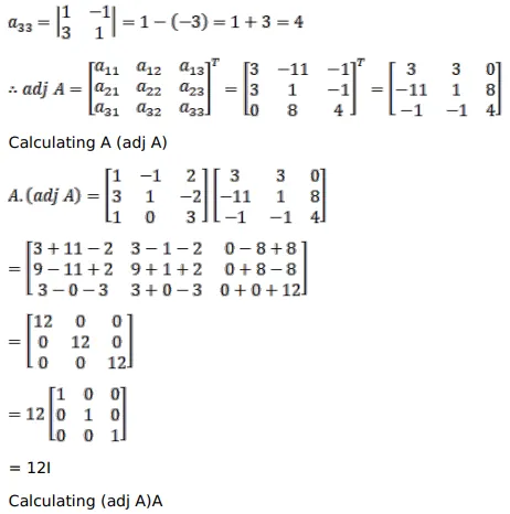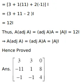 Find the adjoint of the given matrix and verify in each case that $A .(\operatorname{adj} \mathrm{A})=(\operatorname{adj} \mathrm{A})=\mathrm{m}|\mathrm{A}| . \mathrm{I} .\left[\begin{array}{ccc}1 & -1 & 2 \\ 3 & 1 & -2 \\ 1 & 0 & 3\end{array}\right]$