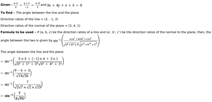 Find the angle between the line $\frac{x-2}{3}=\frac{y+1}{-1}=\frac{z-3}{2}$ and the plane $3 x+4 y+z+5=0$.