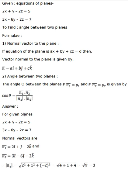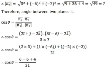 Find the angle between the planes $2 x+y-2 z=5$ and $3 x-6 y-2 z=7$.