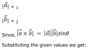 Find the angle between two vectors $\vec{a}$ and $\vec{b}$ with magnitudes 1 and 2 respectively, when $|\vec{a} \times \vec{b}|=\sqrt{3}$.