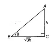 $\tan \theta=\frac{A B}{B C}=\frac{h}{\sqrt{3} h}$
