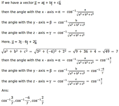 Find the angles which the vector $\vec{a}=3 \hat{i}-6 \hat{j}+2 \hat{k}$ makes with the coordinate axes.