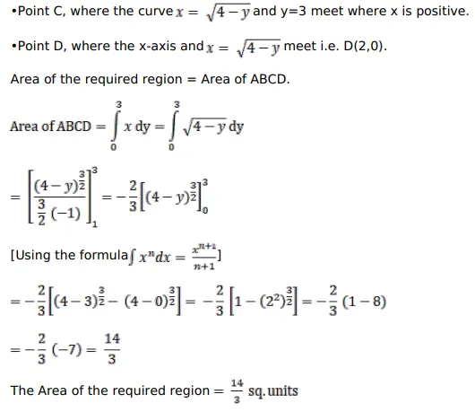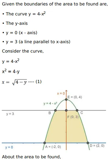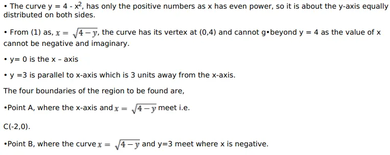 Find the area bounded by the curve $y=\left(4-x^{2}\right)$, the $y$-axis and the lines $y=0, y=3$.