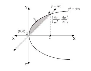 The area enclosed between the parabola, $y^{2}=4 a x$, and the line, $y=m x$, is represented by the shaded area $\mathrm{OABO}$ as