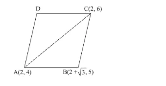 It is given that $\mathrm{A}(2,4), \mathrm{B}(2+\sqrt{3}, 5)$ and $\mathrm{C}(2,6)$ are the vertices of the parallelogram $\mathrm{ABCD}$.