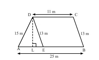 $A E=(A B-E B)=(A B-D C)=(25-11)=14 \mathrm{~m}$