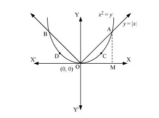 The point of intersection of parabola, $x^{2}=y$, and line, $y=x$, is $\mathrm{A}(1,1)$.