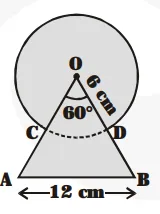Find the area of the shaded region in fig., where a circular arc of radius 6 cm has been drawn with vertex O of an equilateral triangle OAB of side 12 cm as centre.
