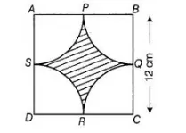 Find the area of the shaded region in figure, where arcs drawn with centres A, B, C and D intersect in pairs at mid-point P, Q, R and 5 of the sides AB,