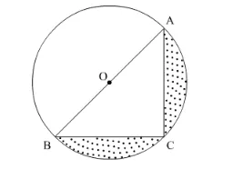 Area of shaded region $=$ Area of circle $-$ Area of semicircle $-$ Area of triangle