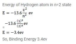 Find the binding energy of a hydrogen atom in the state n=2.