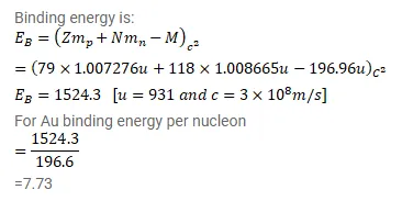 Find the binding energy per nucleon of $79197 \mathrm{Au}$ if its atomic mass is $196.96 \mathrm{u}$.