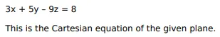 Find the Cartesian equation of the plane whose vector equation is $\vec{r} \cdot(3 \hat{i}+5 \hat{j}-9 \hat{k})-8$.