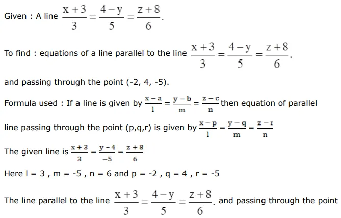 Find the Cartesian equations of the line which passes through the point $(-2,4,-5)$ and which is