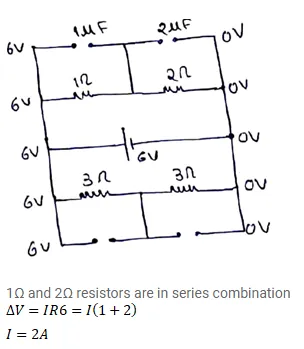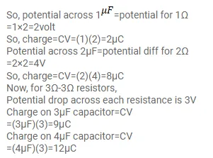 Find the chargers on the four capacitors of capacitances 1 μF, 2 μF, 3 μF
