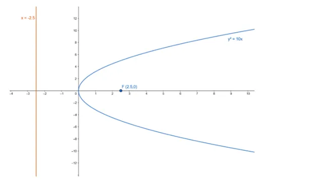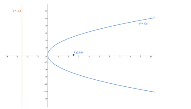 $y^{2}=10 x$